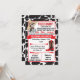Sim! Celebre o estilo do cowboy com este super fofo convite de festas do Cowboy com uma ilustração vintage de um lindo cowboy com um chapéu grande, bota de cowboy e tipografia divertida contra um fundo com padrão de vaca.