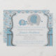 Celebre o menino novo chegando em sua vida com este adorável convite para chás de fraldas de elefante. Uma mamãe bonita e um elefante bebê são o centro das atenções neste convite. Bonito papéis padronizados em lindas sombras azuis e cinzas serão o convite perfeito para seu chá de fraldas.