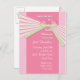 Este design tem listras em rosa quente, verde limão e branco com um fundo de rosa quente e rosa suave. A fita é design com um loop no meio das listras e a parte traseira também se mistura com a fita na parte inferior. Um convite divertido que se juntará a condecorações brilhantes de convite.