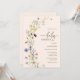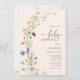 Este convite para na moda e chá de fraldas elegante apresenta lindas flores silvestres de cor d'água pintadas manualmente, organizadas como um adorável buquê e um roteiro elegante de caligrafia que é perfeito para primavera, verão ou chás de fraldas de outono.