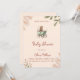 Celebre a chegada do seu pequeno com este convite de chá de fraldas boho maravilhosamente projetado. Apresentando uma paleta de cor pastel macia, delicados sotaques florais desenhados à mão e uma encantadora carruagem de bebês, este convite expele uma estética rústica, caprichosa e elegante. O verde-aquarela e as flores silvestres adicionam um toque de chic boho, fazer perfeito para um chá de fraldas inspirado na natureza.
