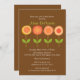 Comece seu evento com nosso convite de Chá de fraldas de flores do Trendy & Modern Bloom apresentando uma fileira de flores laranja bonito em um fundo marrom.   Personalize nosso convite com suas informações de chá de fraldas e você está pronto para ir. Disponível em www.celebrateitinvites.com em outras cores! © Tracy an digital art