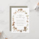 Convide seus amigos mais queridos e entes queridos para o seu chá de fraldas temido da floresta com este adorável, aquarela 'um bebê está a caminho' convite à criatura da floresta.