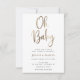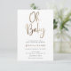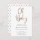 Querida! Convite para chá de fraldas com "Oh Baby" em uma caligrafia divertida com folha de ouro falsa. bolinhas Douradas no fundo. Personalize com sua foto na parte de trás.