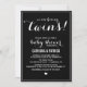 Chá de fraldas Twins de Script Preto e Branco Convite para chás de fraldas Cute e whimsical com fontes brancas de caligrafia.