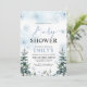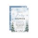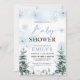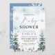 Chá de fraldas da Wonderland de inverno com flocos de neve azuis e pinheiros, e boho design.