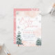Um convite para chás de fraldas elegante, cor-de-rosa e esmagador, com flocos de neve, pinheiros, e um design boho.