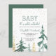 Este convite para o chá de fraldas temático de inverno apresenta árvores verdes e douradas com cor d'água em árvores verdes e verdes sob uma queda de ouro. A palavra "BABY" aparece em letras escuras verdes maiúsculas, com a frase "está frio lá fora!" abaixo em um moderno roteiro verde de escrita manual. Adicione o nome da mãe a ser em verde e os detalhes da festa em cinzas de carvão sans serif. A parte traseira do cartão é uma sombra de verde correspondente. Um tema ideal e neutro em termos de gênero para um chá de fraldas durante o inverno ou a época de férias!