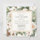 O Elegante convite para chás de fraldas de inverno apresenta um quadro de ouro rodeado por cor d'água verde-d'água, pinheiros e flores de inverno. Personalize com suas informações ou clique em "Clique para personalizar mais" para editar estilos de fonte, tamanho e cores.