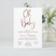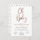 Chá de fraldas por convite por correio com "Oh Baby" em uma caligrafia divertida com folha metálica falsa de ouro. bolinhas Douradas no fundo. Personalize com sua foto na parte de trás.