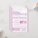 Convite para Chá de fraldas de Garota Púrpura e Rosa com um visual moderno bonito. design genérico que funcionará com qualquer tema de chá de fraldas! Também pode ser bom para Chás de fraldas cristãos ou católicos com um verso Bíblia nas costas!