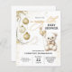 Apresentando nosso Dourado Convite para Chás de fraldas de Natal! Esta design encantadora mostra um urso adorável segurando um balão em forma de coração, cercado por deliciosas bolas de Natal de ouro. Perfeito para celebrar a chegada iminente do seu pequenino durante a estação festiva, este convite combina o calor de um chá de fraldas com a magia do Natal. Convide seus entes queridos a se juntarem à celebração com este doce e na moda convite que captura a alegria de ambas as ocasiões!