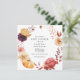 O belo convite para o chá de fraldas de outono apresenta um quadro de florais de aquarelas, abóboras e verde. Personalize com suas informações ou clique em "Clique para personalizar mais" para editar estilos de fonte, tamanho e cores.