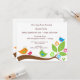 A frente e o verso deste convite ao chá de fraldas tem 4 aves contemporâneas sentadas num ramo de árvore com 4 flores coloridas. design ideal para chá de fraldas, chá de panela ou aniversário! Há um monte de texto personalizável para você personalizar este convite com suas informações de participante.