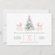 Adotar o espírito festivo com este convite de chá de fraldas rosa-claro, com duas carruagems cor-de-rosa e uma bela árvore de Natal rosa e verde.