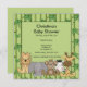 Chá de fraldas Selvagem Adorável, convite neutro em relação ao gênero, com um elefante, leão, macaco e girafa num fundo de moldura verde e selva. Apenas personalize com suas informações e você está pronto para ir! Itens correspondentes disponíveis em nosso compro. Perfeito para uma menina ou chá de fraldas de bebê. ©ScrappinDoodles