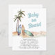 Um convite para chás de fraldas, com um bom orçamento, apresentando uma cena de praia em aquarela com palmeiras, praias arenosas e pranchas vibrantes e marrom, e "Baby on Conselho" em um divertido roteiro azul. Adicione o nome da futura mãe e os detalhes do chá em simples caracteres modernos. Este papel semirbrilhante do orçamento é semelhante em peso ao papel fotográfico. Também está disponível uma versão maior do estoque de cartão tradicional 5x7 (mensagem para o link).