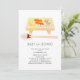 Este convite para chás de fraldas bonitinho e kawaii "baby on conselho" neutro em relação ao gênero apresenta sushi e rolos em um conselho de madeira com dois pauzinhos em aquarela em um fundo branco. O verso apresenta um fundo branco com padrões de ondas de cinza. Altere a cor de fundo tanto na frente quanto no verso e personalize-a para suas necessidades.