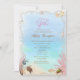 Para o chá de fraldas mais adorável de todos, comemore com este belo e colorido convite temático oceânico. Você pode personalizar o texto de seu gosto. A carta apresenta uma bela tartaruga marinha nadando debaixo d'água com plantas marinhas, conchas e um peixe ao fundo. O convite é perfeito para uma mãe ser que ama a praia.