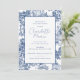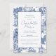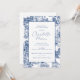 Bonito convite de chá de fraldas ao estilo Toile de jouy, azul e branco.