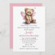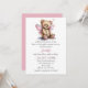 Adorável convite de chá de menina, com belos gráficos de um doce ursinho, com asas azuis e rosa, contra um fundo branco. Personalize o texto personalizado para o seu próximo evento.