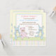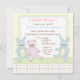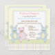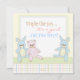 Diga aos seus convidados que trigêmeos estão a caminho com este adorável design original. Dois coelhinhos azuis e um ursinho de pelúcia rosa adoram este doce convite de chá que foi especialmente projetado para um chá tripleta!