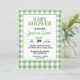 Bonito convite para chás de fraldas neutro de gênero para gingham verde-xadrez, altere o texto você mesmo quando solicitar