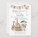 Este adorável convite para o chá de fraldas apresenta girafas bonitas em um zoológico. As cores pastel neutras tornam este convite adequado para um menino ou para uma menina.