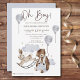 Você está pronto para embarcar em uma encantadora jornada de volta no tempo e celebrar a chegada iminente de um menino da forma mais elegante e caprichosa? Não olhe mais que este convite de chá de fraldas de ursos de aquarela!