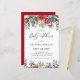 Convide familiares e amigos com este convite personalizável para chás de fraldas. Apresenta terras aquosas de rosas vermelhas, amoras-vivas e flores de poinsettia com pinos e acentos verdes. Personalize adicionando nomes, data, hora, local e outros detalhes do evento. Este convite floral de inverno é perfeito para chás de fraldas de inverno. Itens correspondentes estão disponíveis.