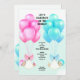 Adoráveis chás de fraldas rosas e azuis gêmeos convidam gêmeos meninas e garotos com buquês de balão.