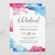 Os salpicos cor-de-água rosa e azul vão avisar a todos que estão à espera de um rapaz e de uma rapariga! Este convite também seria excelente para um chá de fraldas revelador de gênero!