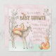 As raparigas pedem chá de fraldas florestal com animais adoráveis de floresta num fundo florestal de rosa claro. Este convite para chá de fraldas de madeira de cor d'água, raposa, coelho e esquilo é facilmente personalizado para o seu evento, simplesmente acrescentando os detalhes do seu evento.