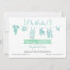 Querida! É um garoto, chá de fraldas convite. Apresentando aquarelas azuis e verdes, roupas de bebê e um urso pendurado. Tudo abaixo da faixa é editável.