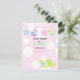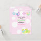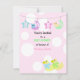 Um fundo macio de cor-de-rosa com pontos brancos grandes. Pequenos patos amarelos. Lua e estrelas com as letras Baby. Personalize com todas as informações do seu chá de fraldas conforme desejado.