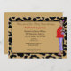 Mulher grávida vestida de vermelho. Convite para chá de fraldas bonito com fundo de impressão animal e cor brown.delightful-doodles.com