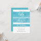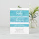 Esta tendência e o elegante convite para chá de fraldas de 4,5" x 6,25" apresenta faixas de aquarela pintadas manualmente horizontais em tom azul. O texto "Chá de fraldas" está escrito em um roteiro moderno. Personalize o nome do futuro pai e os detalhes do evento do chá de fraldas com texto, fonte e cores (mostradas na cinza) de sua escolha. O verso é um padrão branco de quatrefoil com uma cor sólida de fundo (mostrada em turquesa) que pode ser alterada para o seu gosto.