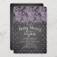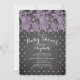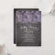 Um chá de fraldas moderno para um chá de fraldas para raparigas. Nosso convite para o chá de fraldas Moderno com uma reviravolta antiga apresenta um belo local roxo lavanda com bolinhas delicadas definidas em um fundo de conselho preto contemporâneo. Sacudir o nosso belo convite para ver um fundo de quadro negro correspondente para um toque especial extra. Visite nosso compro para ver este convite em rosa, azul e verde!