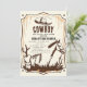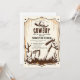 Perfeito para um aniversário, chá de fraldas, ou celebração de temas ocidentais, este convite combina encantos rústicos de vaqueiro com elementos design modernos e limpos. Apresentando tipografia minimalista, temas ocidentais como botas, chapéus e ferraduras, e uma paleta de cores neutra ou suja, é a maneira ideal de receber convidados para o seu evento inspirado no Ocidente selvagem. Personalize com seus detalhes de evento para uma verdadeira celebração de um tipo!