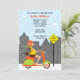 Este convite de chá de fraldas único mostra uma mulher grávida a andar de ciclomotor colorido na cidade. Este convite só está esperando para ser personalizado com seus detalhes. Alguns elementos Baby Star Design