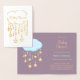 Nuvem estilizada com miçangas suspensas e estrelas ouros que se parecem com um móvel para bebês. As cores da design são neutras em termos de gênero.