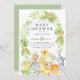 Adorável convite do chá de fraldas Safari, com girafa, leão, zebra, elefante, macaco, tigre e jacaré para um chá de fraldas neutro em termos de gênero. Visite o nosso compro para ver este convite para uma ou mais meninas chás.