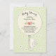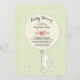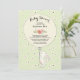 Coelho coelho bonito segurando um grande balão colocado em um fundo floral verde para um chá de fraldas neutro para uma menina ou um menino. Visite o nosso compro para ver este convite em várias cores.