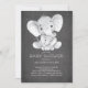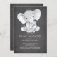 Convite para o chá de fraldas elefante com a cinza, mãe e girafa para bebês, feito em um quadro negro popular para um chá de fraldas neutro em relação ao gênero. Sacudir o nosso convite para ver um fundo de cinza coordenador para um toque especial extra. Visite nosso compro para ver itens correspondentes.