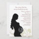 Apresentar o ultrassom do bebê neste lindo design chá de fraldas. O fundo branco tem flores bronzeadas e brancas e espirros e uma silhueta de uma mulher grávida com um bebê no útero. *Não tem um ultrassom do bebê? Utilize este ultrassom genérico fornecido.