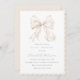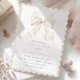 Um convite para chás de fraldas elegante, com um arco branco elegante. Escolha as bordas recortadas para um acabamento caprichoso.
