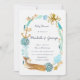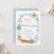 Uma bela coroa de criaturas marinhas cobertas de ouro, baleia, polvo, peixe estrelado, peixe, tartaruga, âncora, coral, cascas de aquarela e algas marinhas em coral rosa e chalé azul, acenando sobre este convite de chá de fraldas. Um belo design marítimo náutico