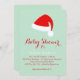 Um roteiro de fita rico e um chapéu de Papai Noel vermelho acendem este convite de chá de fraldas verde da casa da moeda, fazer-o perfeito para o inverno da menina ou do menino, Natal ou chá de férias.