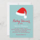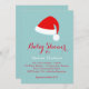 Escrito de fita rico e um sotaque vermelho brilhante de Papai Noel este convite para chá de fraldas de turquesa, fazer perfeito para o chá de inverno, Natal ou feriado.