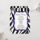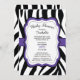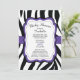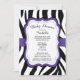 O chá de fraldas de uma menina com padrão de zebra moderno apresenta uma impressão zebra branca e preta com um quadro de rico roxo popular. Sacudir o nosso convite para na moda e chá de fraldas chic para ver uma correspondência para um toque especial. Perfeito para seu chá de fraldas diva